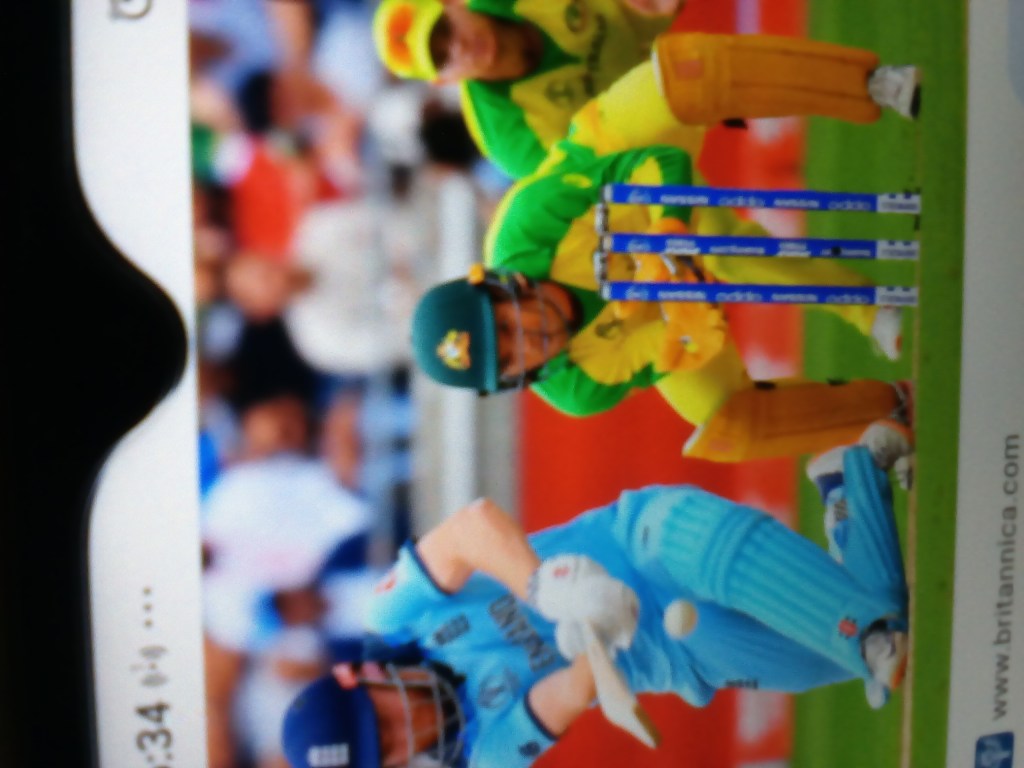 Cricket is a bat-and ball game played between two teams of eleven players on a field at the center of which is a 20-meters pitch with a wicket at each end ,each comprising two vails balanced on three stumps.